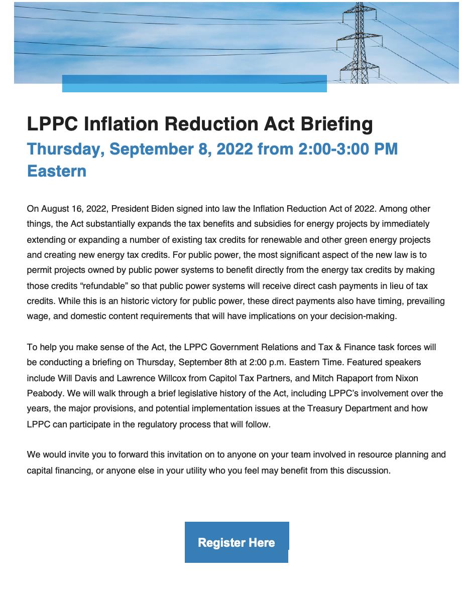 LPPC Inflation Reduction Act Briefing | Thursday, September 8 at 2 PM Eastern